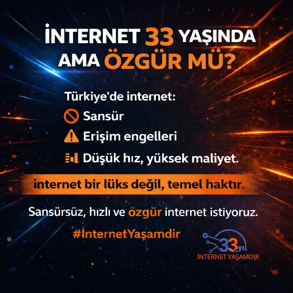12 Nisan 2026, Türkiye’nin İnternet’le tanışmasının 33. yıldönümü. “İnternet Yaşamdır!” öğretisini sahiplenen örgütler olarak bu yıldönümünde de İnternet’in ülkemizdeki durumunu ve geleceğini değerlendirmek üzere kamuoyuna sesleniyoruz.